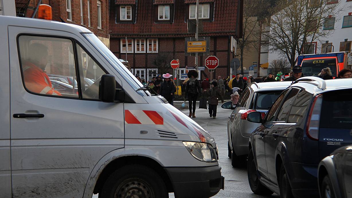 So wird es bei Großveranstaltungen bislang gehandhabt: Ein Fahrzeug blockiert beim Steinheimer Rosenmontagsumzug eine Zufahrtsstraße. | © David Schellenberg