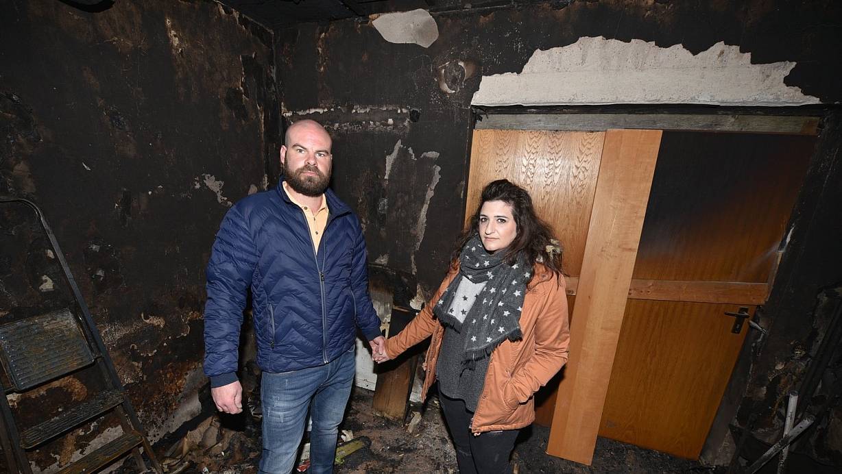 In dem Raum brach das Feuer aus, wo Luisa Arena und Marcel Fischer stehen, Brandrauch ist noch in der Luft wahrnehmbar. | © Thomas Kube