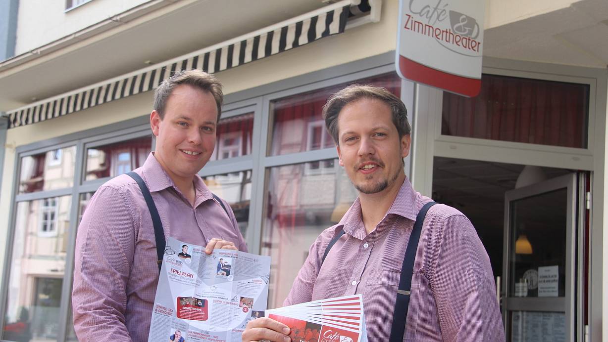 Stefan Marx (l.) und Simon Hillebrand vom Café und Zimmertheater freuen sich, ihren Betrieb wieder aufnehmen zu können. | © Burkhard Battran