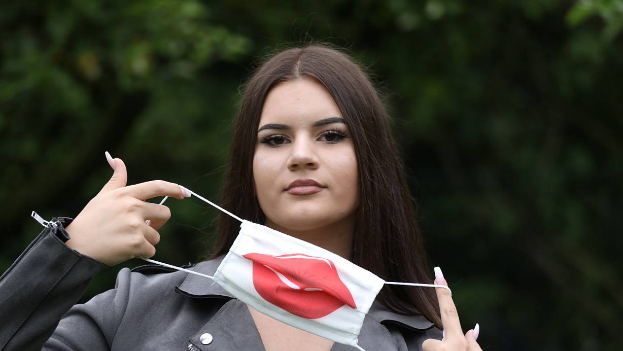 Cora zeigt eine witzige Variante der Mund-Nase-Marken mit Kussmund. | © Simone Flörke