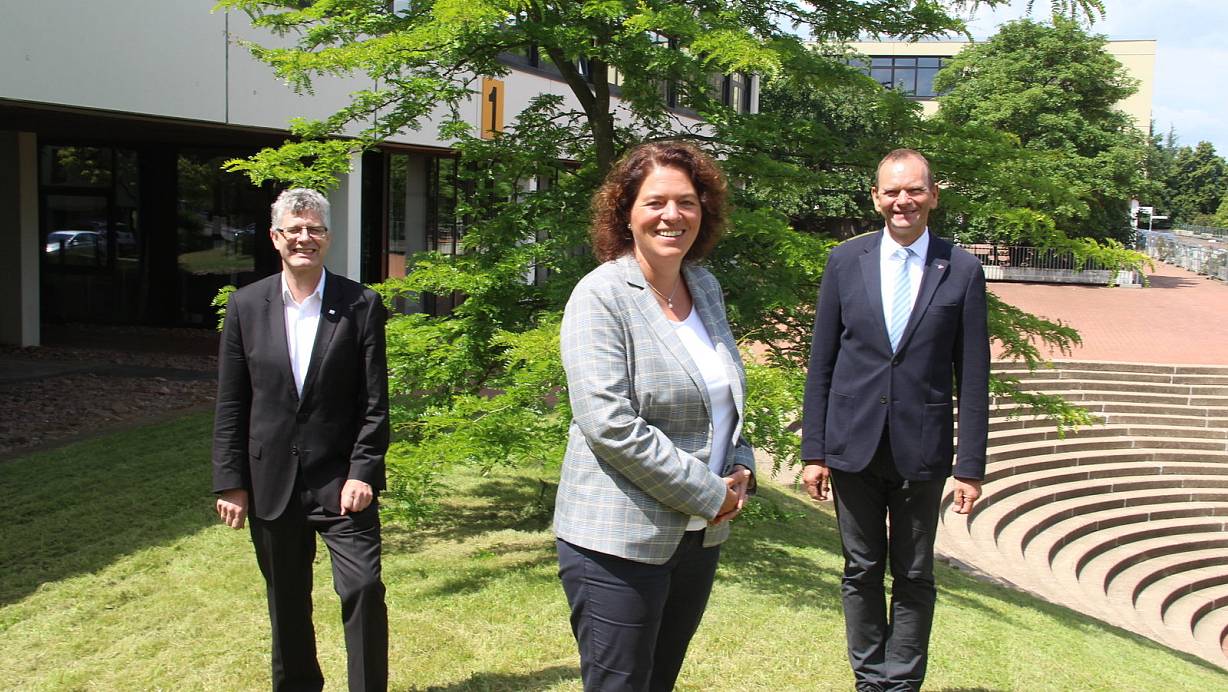 Die Bundestagsabgeordneten der Kreise Höxter und Lippe, Christian Haase( l.) und Kerstin Vieregge mit Hochschulpräsident Jürgen Krahl. | © Burkhard Battran