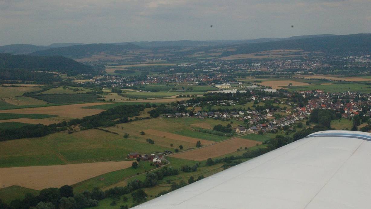 Rundflug mit der Piper PA 28 Archer III: Der Blick aus rund 600 Metern Höhe zeigt Albaxen und im Hintergrund Stahle und Holzminden. | © Mathias Brüggemann