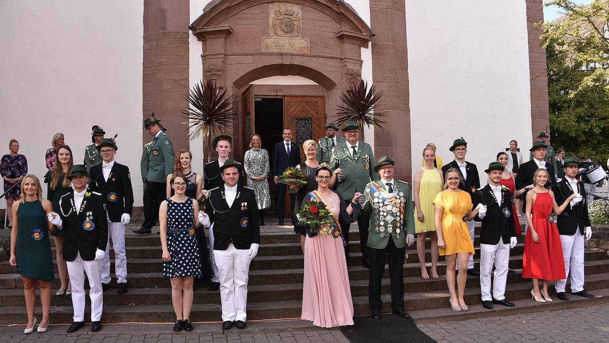 Im Mittelpunkt des Höxteraner Schützenwesens: Die neue Königin Sandra Vogt gemeinsam mit Schützenkönig Frank Wiesemann vor der Nikolaikirche. | © Thomas Kube