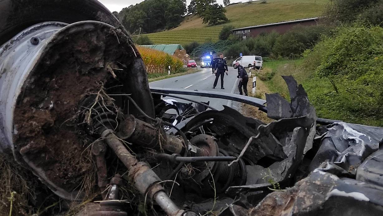 Der schwarze Kleinwagen der Unfallverursacherin landete etwa hundert Meter unterhalb der Unfallstelle, wo der weiße Bulli (Hintergrund) zum Stehen kam. | © Svenja Ludwig
