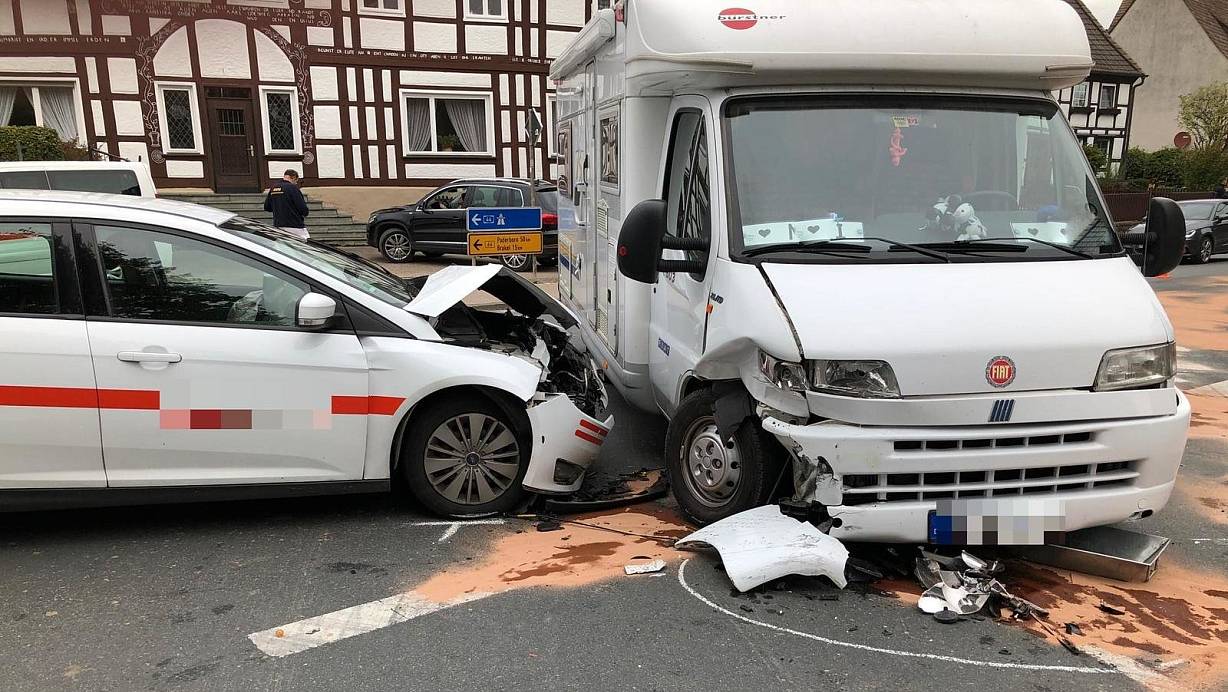 Unfall auf der B64 bei Höxter: Wohnmobil kracht in Pkw
