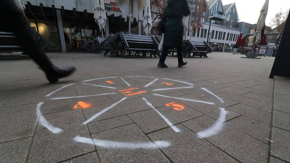 Seltsame Sprühkreise auf dem Pflaster in Höxter