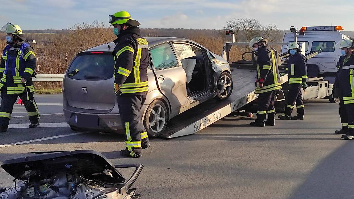 Eine 24 Jahre alte Fahrerin übersieht beim Abbiegen offenbar den Gegenverkehr. Die Kreisstraße 46 war etwa eine Stunde lang halbseitig gesperrt.