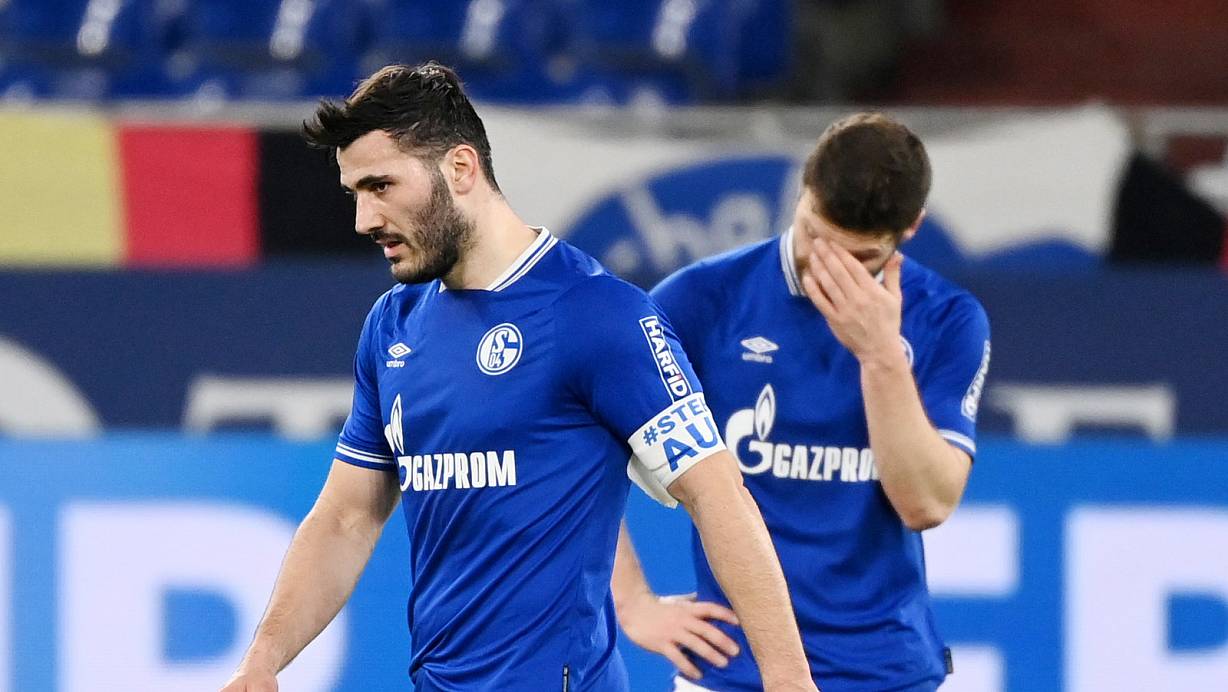 Verzweiflung pur: Die Schalke-Spieler Sead Kolasinac und Shkodran Mustafi nach dem 0:3 gegen Gladbach. | © Reuters/Ina Fassbender