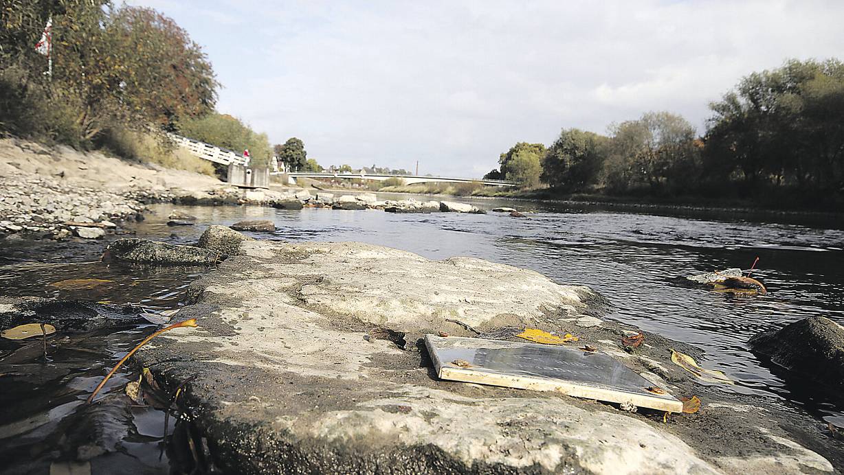 Niedriger Weserpegel bei Höxter wegen Trockheit: ein Bild, das künftig öfter zu sehen sein könnte. | © David Schellenberg