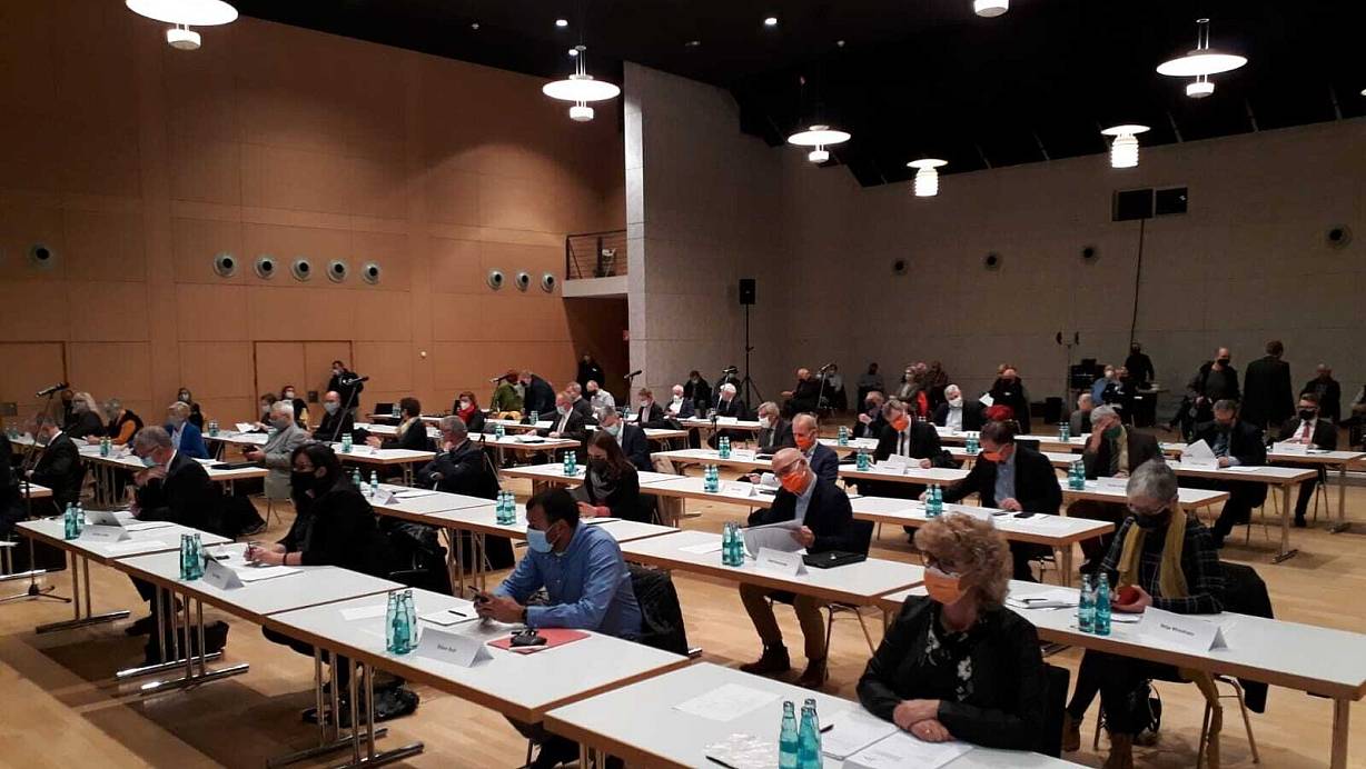 Die konstituierende Sitzung des Rates in der Stadthalle Höxter – mit Abstand und Mund-Nasen-Bedeckung. | © Simone Flörke