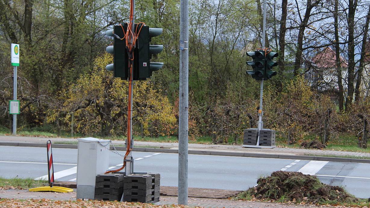 Seit November stehen die Ampelpaare auf der Bundesstraße 64/83 ortsauswärts. Das passiert jetzt.