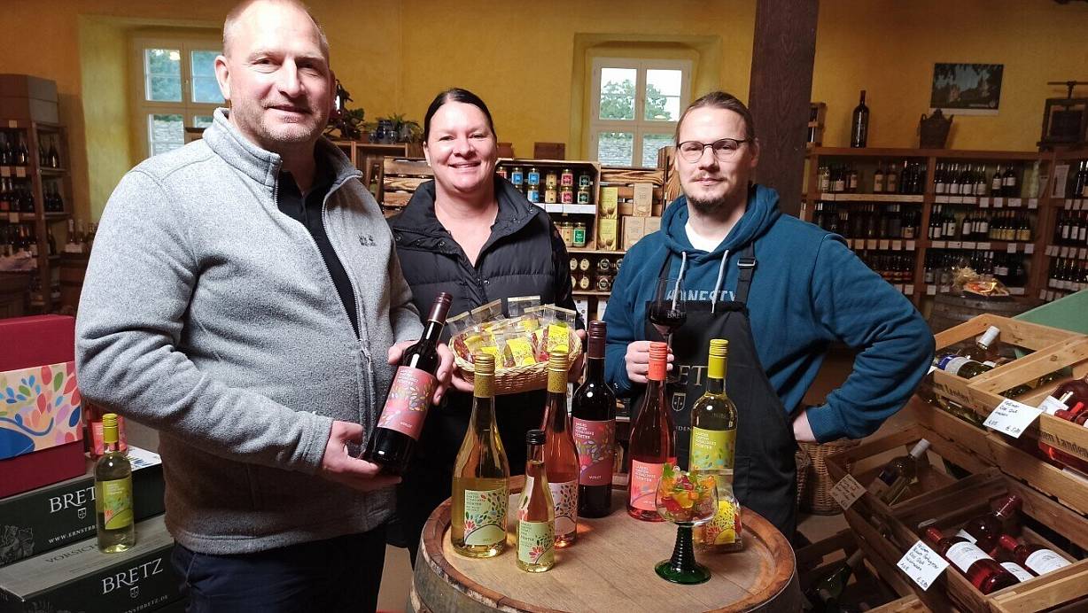Dazu kommen noch ein umfangreiches Spirituosen- und Feinkost-Sortiment. Zusätzlich zu den Landesgartenschau-Weinen sind auch Seccos im Angebot, dazu Süßigkeiten wie Traubensaft-Bärchen und Bonbons mit Traubenlikör für die Erwachsenen.