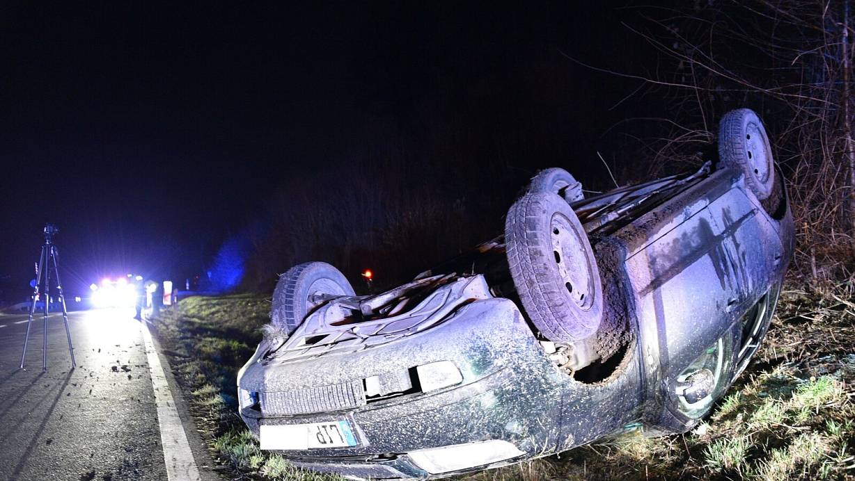 Der Skoda kam von der Straße ab und landete auf dem Dach im Graben. | © Thomas Kube