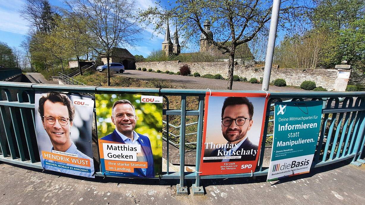 Die Landtagswahl ist in der heißen Phase angekommen. Nicht nur Wahlplakate, wie hier an der Abtei Marienmünster, sondern auch das plötzliche Auftauchen von viel Politprominenz im Kreis Höxter Zeugen davon. | © David Schellenberg