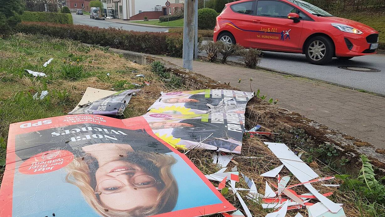 Wie gehen SPD und CDU mit zerstörten Wahlplakaten um?