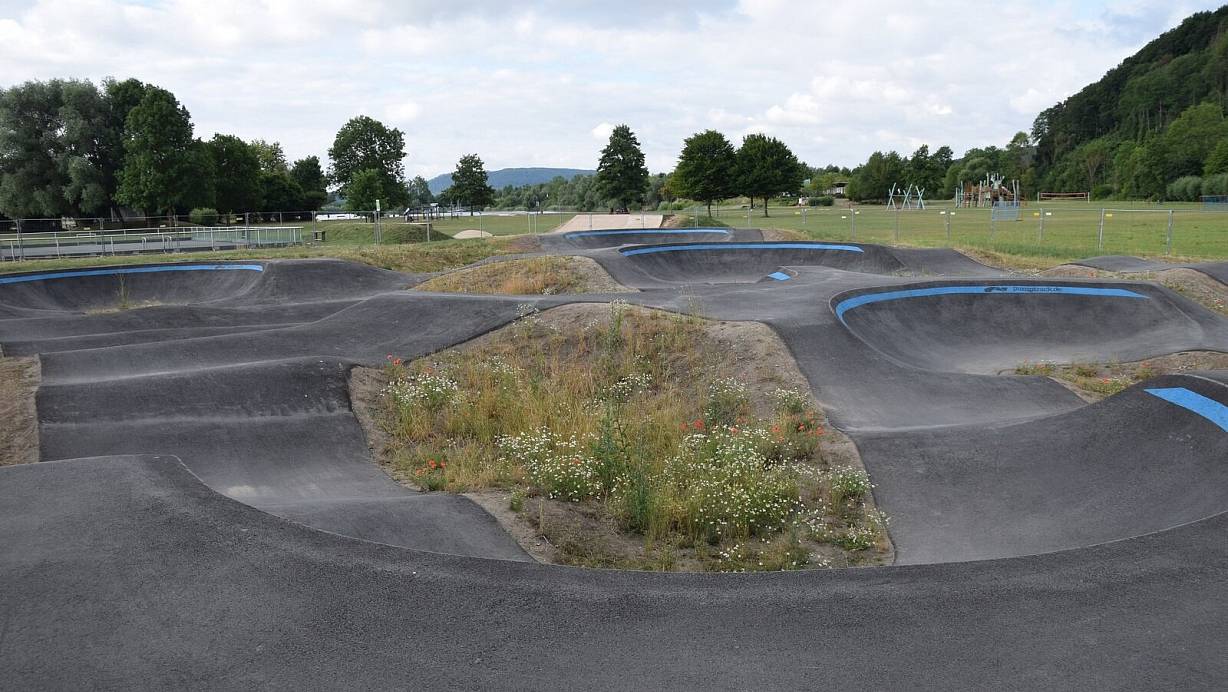 Dass Bauzäune manchmal kein wirksames Hindernis sind, zeigen viele Jugendliche schon seit einigen Wochen. Sie nutzen bereits den Rundkurs des neuen Pumptracks ausgiebig. Am Freitag, 8. Juli, um 15 Uhr wird die Anlage nun auch offiziell von Bürgermeister Daniel Hartmann eröffnet.