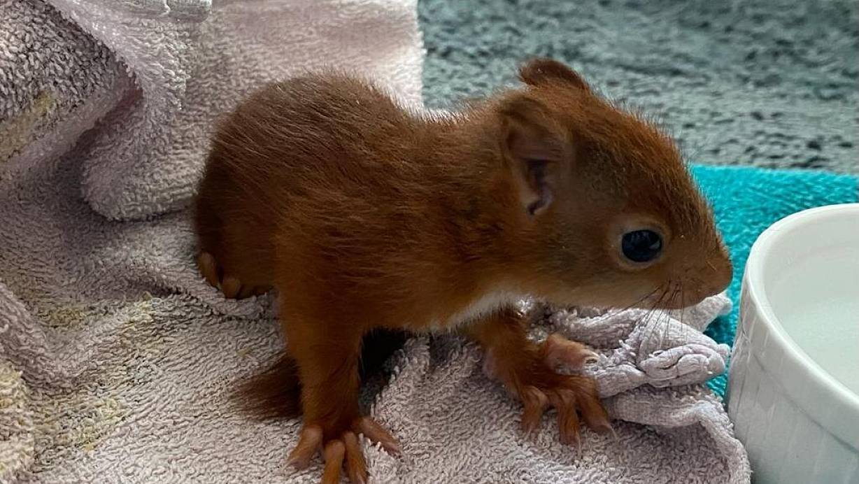 Das kleine Eichhörnchen hat bei einer Polizistin Schutz gesucht. | © Polizei Höxter
