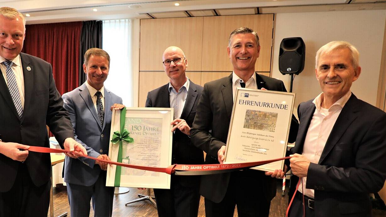 Arntz Optibelt feiert mit 2,83 Kilo schwerer Chronik zum Jubiläum