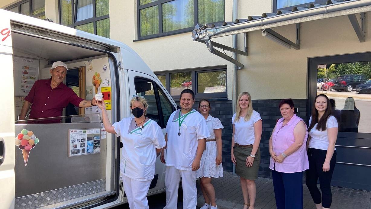 Wie Unternehmen auch bei Sommerhitze eine angenehme Arbeitsatmosphäre schaffen. In der Weserbergland-Klinik gab es Mittwoch Eis.