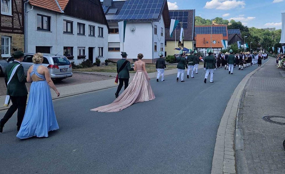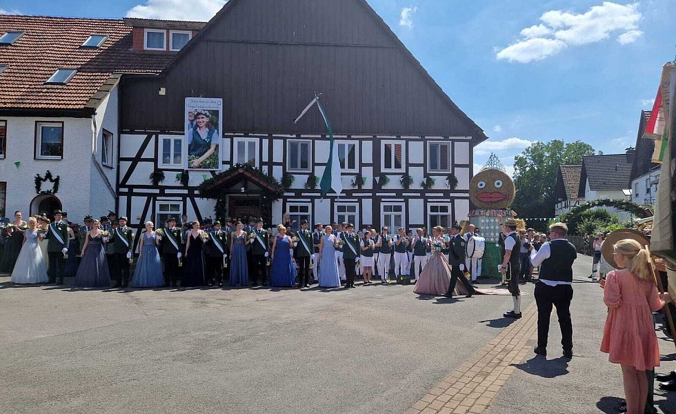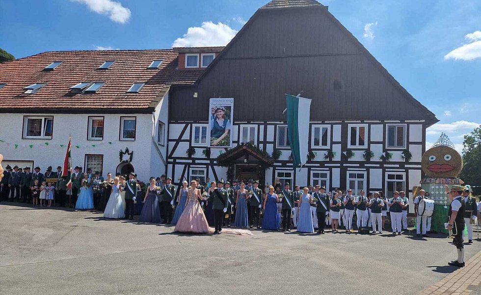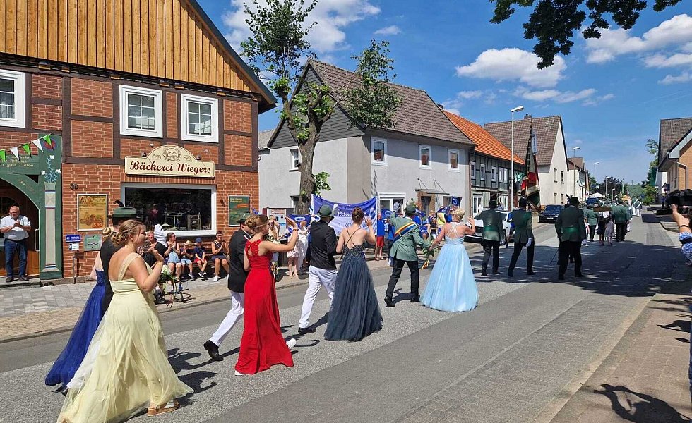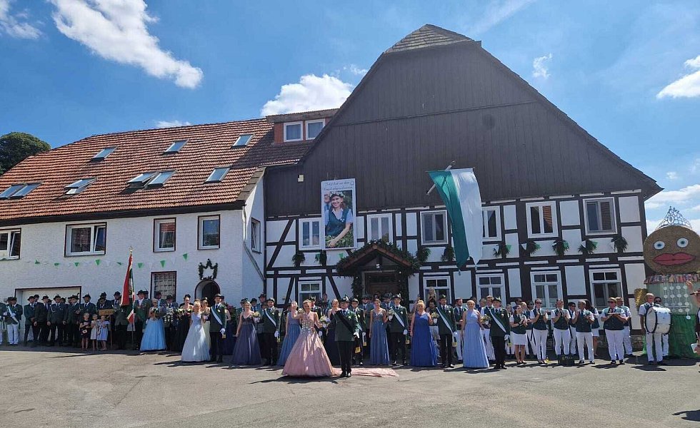 Begleitet wurden sie dabei von ihrem Hofstaat, bestehend aus Ina Janowitz, Lea Bömelburg, Loreen Wittmann, Maria Rode, Katharina Werner, Melissa Husemann, Susanne Stiewe-Haag, Stefan Husemann, Niklas Striewe, Lukas Rösen, Benedikt Haag, Till Janowitz, Erik Unverzagt und Paul Unverzagt. In Ovenhausen jubelten die Schaulustigen Königin und Prinzgemahl zu.