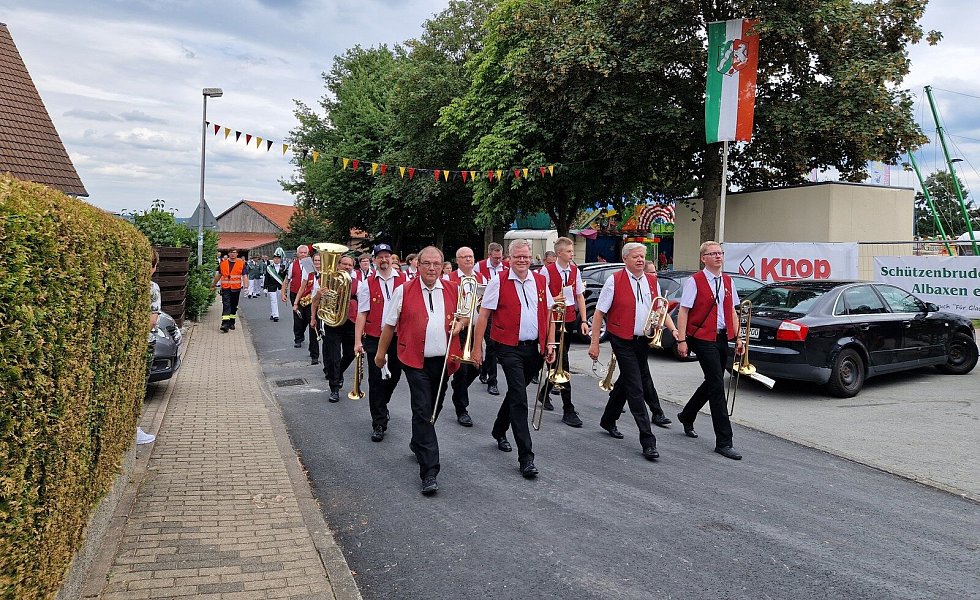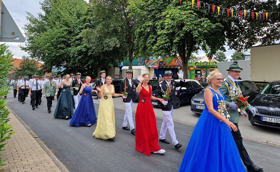 König Julius Peters von der Abteilung St. Vitus (Jungschützen) konnte sich die Königswürde beim Königsschießen im Juni sichern und löste die amtierenden Königspaare Manfred Schäfers und Monika Rode sowie Christoph Struck und Kristin Koch ab. Gemeinsam mit der Königin an seiner Seite, Marie Kuhlmann, repräsentiert er nun die Schützenbruderschaft Albaxen.