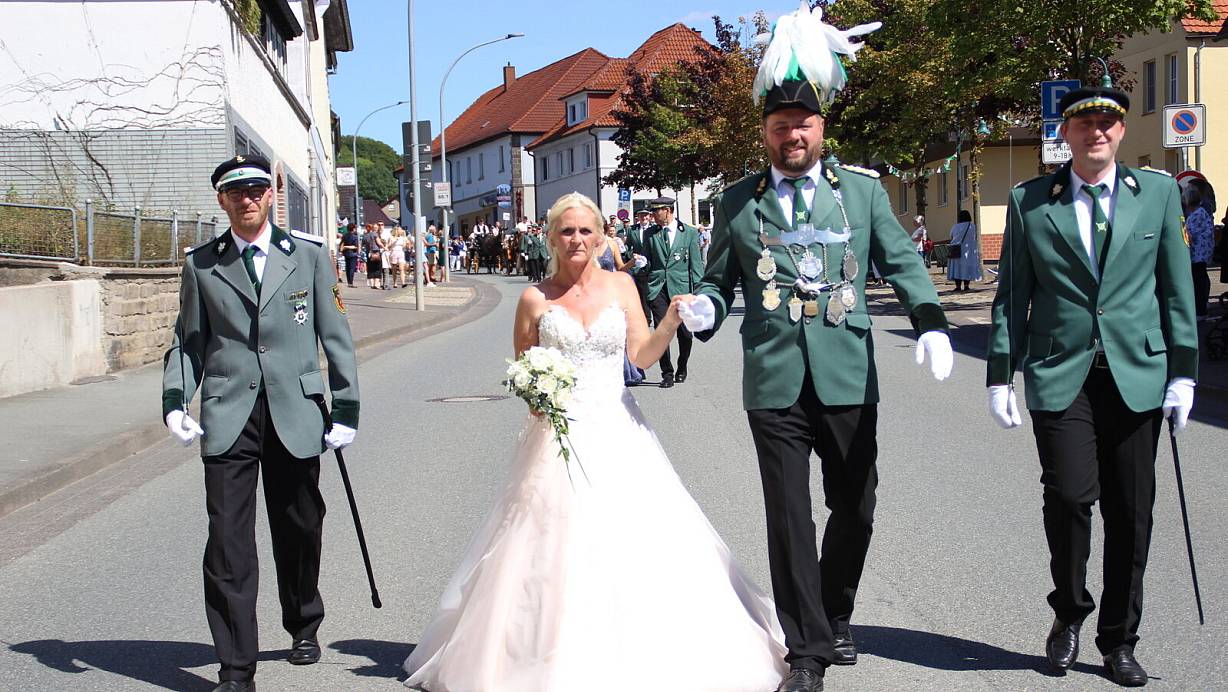 Scherfede. Es ist Schützenfest in Scherfede. Die Sonne schien, die Schützenfahnen waren längst gehisst und die Girlanden schmückten ganz Scherfede, als die Regenten Jens Winter und Gisela Rodewald sich im Rahmen des Festumzugs am Sonntagnachmittag den Zuschauern präsentieren.