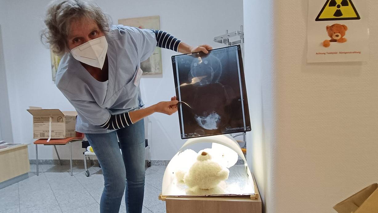 Bei Kinderärztin Antje Christiansen wird ein Teddy geröntgt. Kinder machen sich hier spielerisch mit den Vorgängen auf der Station vertraut. | © Manuela Puls