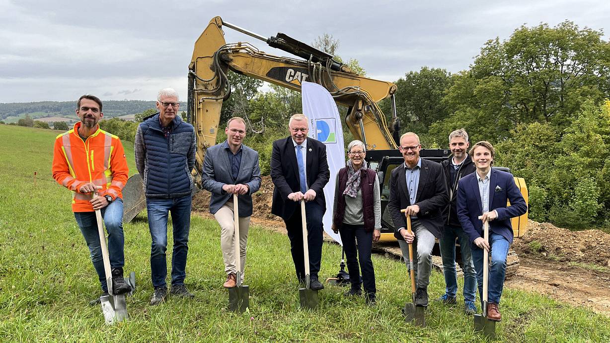 Höxter. Der erste Spatenstich ist gesetzt. Am Triftweg in Höxter entsteht ein neuer Hochbehälter für rund 1,9 Millionen Euro. Die Gas- und Wasserversorgung Höxter hat das Projekt vorrangig in Kooperation mit den regional ansässigen Unternehmen Gebr. Schönhoff Bau und dem Ingenieurbüro Turk geplant und umgesetzt. Fertigstellung soll Ende des Jahres 2023 sein.