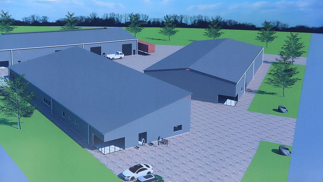Eine Skizze des künftigen Handwerkerparks, der aus drei Hallen bestehen soll. | © Burkhard Battran