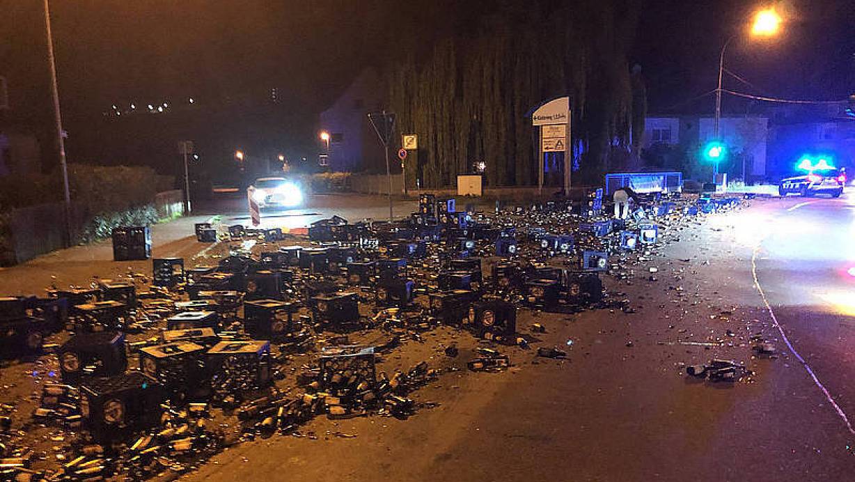 Die Bierkisten hatten sich über die Fahrbahn der Bundesstraße verteilt. | © Polizei