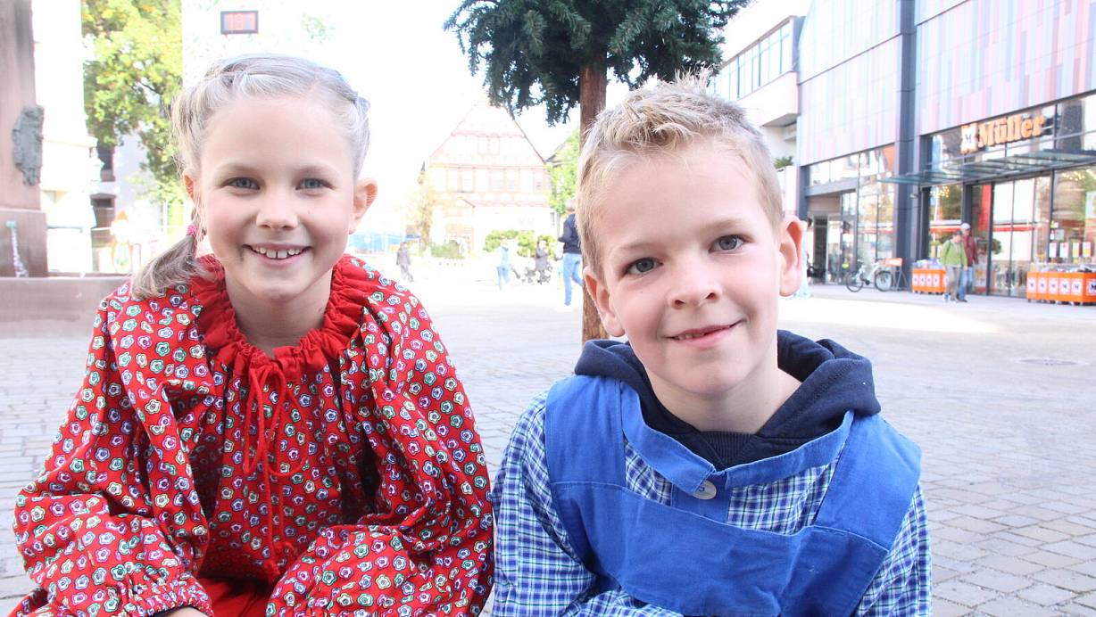 Linea Stickel (8) und Marius Düwel (7) begleiten den Märchensonntag als Hänsel und Gretel. | © Burkhard Battran