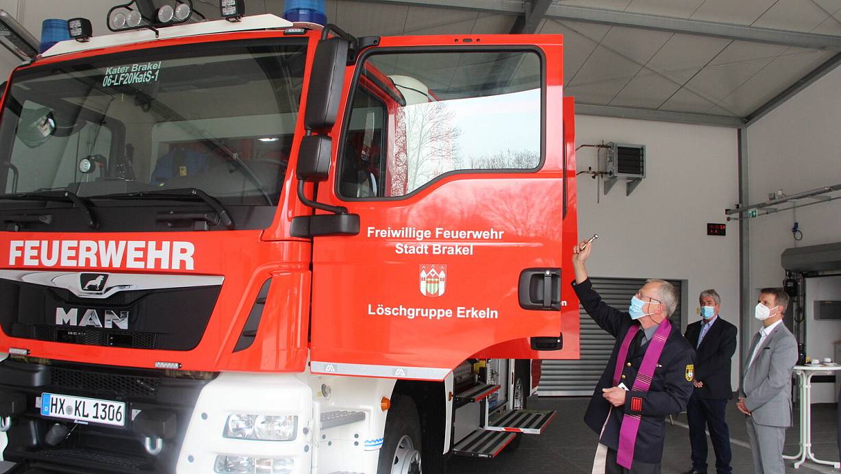 Als Pater in der Notfallseelsorge segnete Wunram oft neue Feuerwehrfahrzeuge, wie hier in Erkeln. | © Burkhard Battran