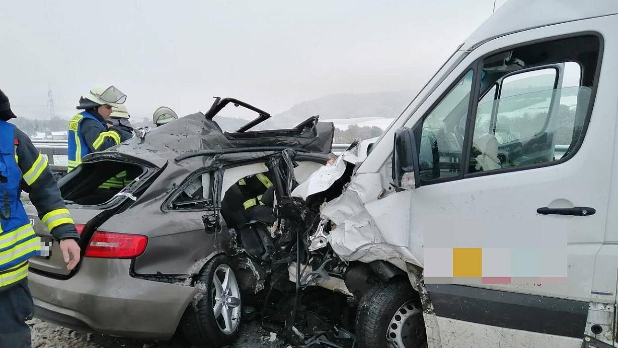 Zwei Rettungshubschrauber waren im Einsatz. Mehrere Menschen wurden schwer verletzt. Strecke bleibt bis in den Nachmittag gesperrt.