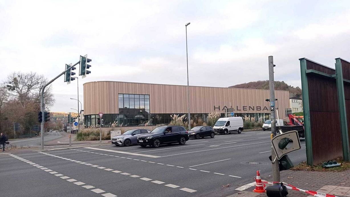 Traktor fährt scheinbar unbemerkt Ampel an der B64 in Höxter um