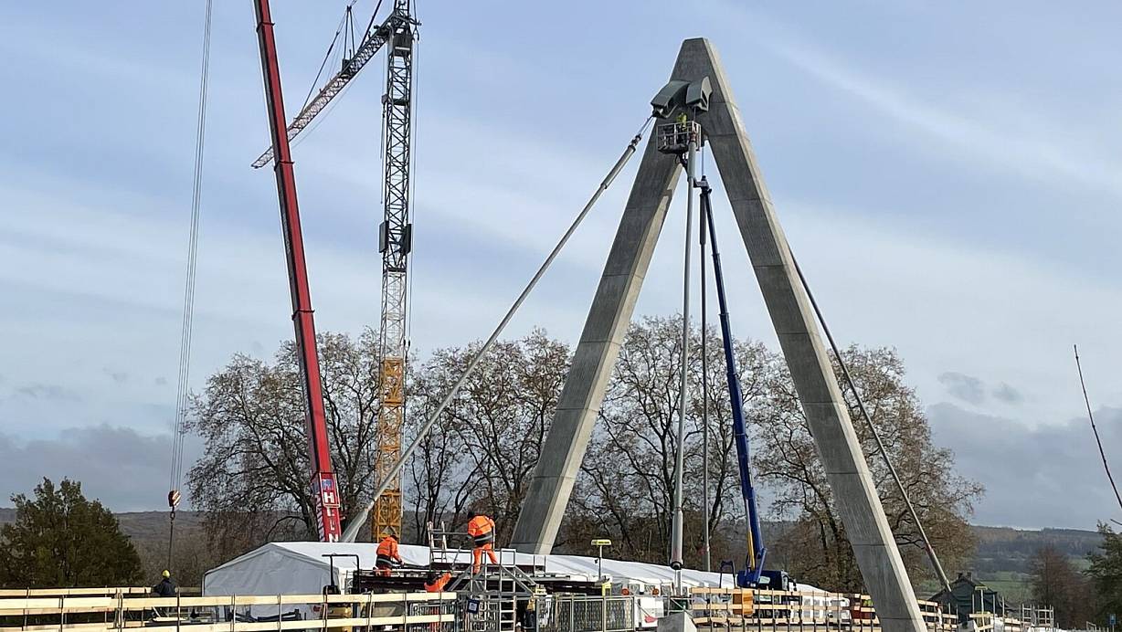 Erst in dieser Woche sind die Stahlseile, die die Traglast der Brücke verbessern sollen, angebracht worden. Dennoch muss die Weserbrücke in Höxter noch länger gesperrt bleiben, als geplant. | © Shannon-Lee Bendig