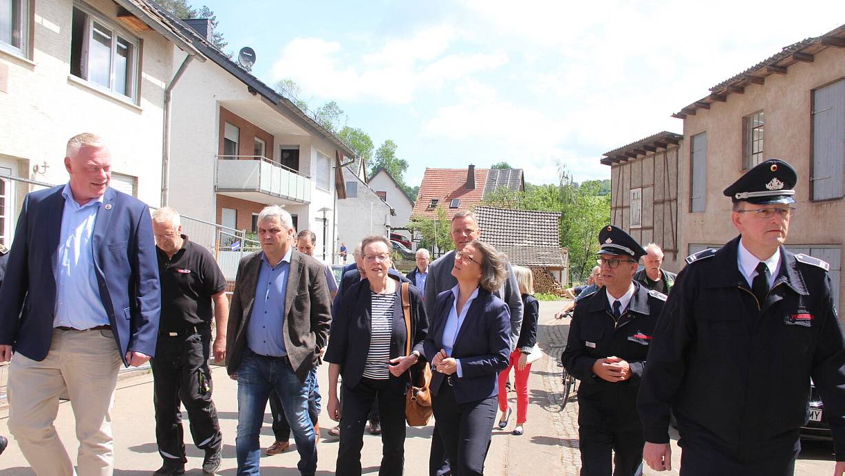 Vor Ort: Regierungspräsidentin Marianne Thomann-Stahl und Ministerin Ina Scharrenbach nehmen kurz nach dem Tornado das Ausmaß des Schadens in Lütmarsen in Augenschein. | © burkhard battran