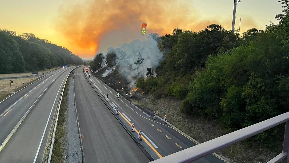 Am 20. Juli 2022: Das Feuer entlang der A 44 bedrohte auch den SVG-Rastplatz, der geräumt wurde. | © Feuerwehr Breuna