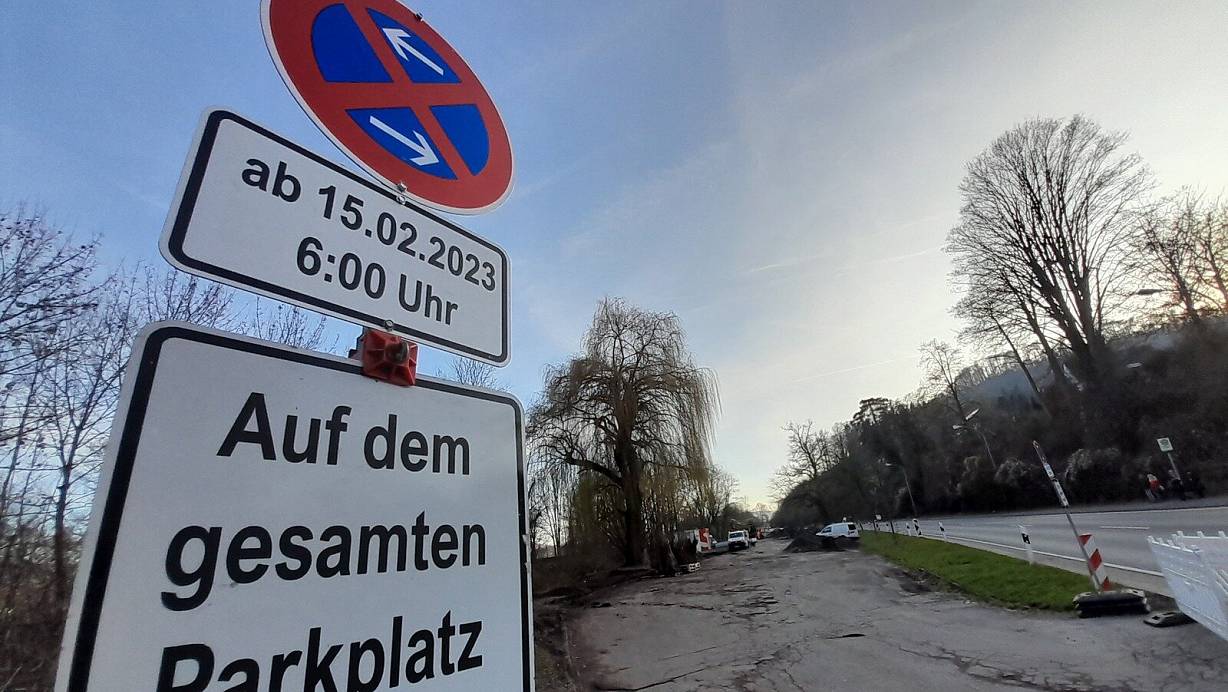 Auch der dahinterliegende Rast- und Info-Parkplatz am Ortseingang von Godelheim kommend ist abgesperrt.