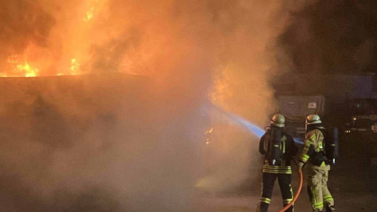 Mitten in der Nacht stehen das Fahrzeug und ein Container in Brand.