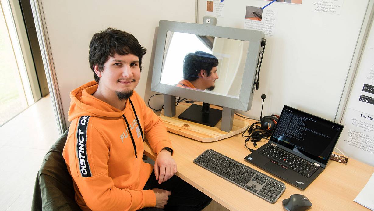 Manuel Engels vom Gymnasium St. Xaver präsentiert seinen smarten Spiegel. | © Stolte/HNF