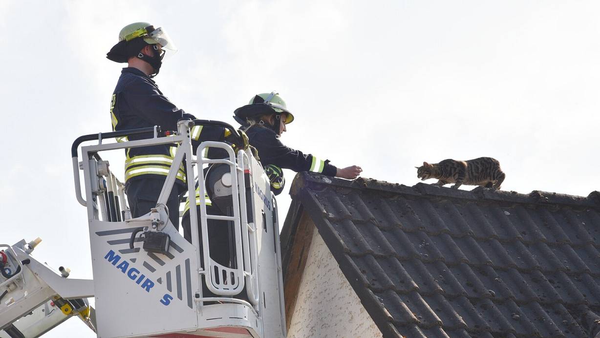 Rauf aufs Dach war kein Problem für Emy, doch für den Rückweg brauchte die Katze die Höxteraner Feuerwehr.