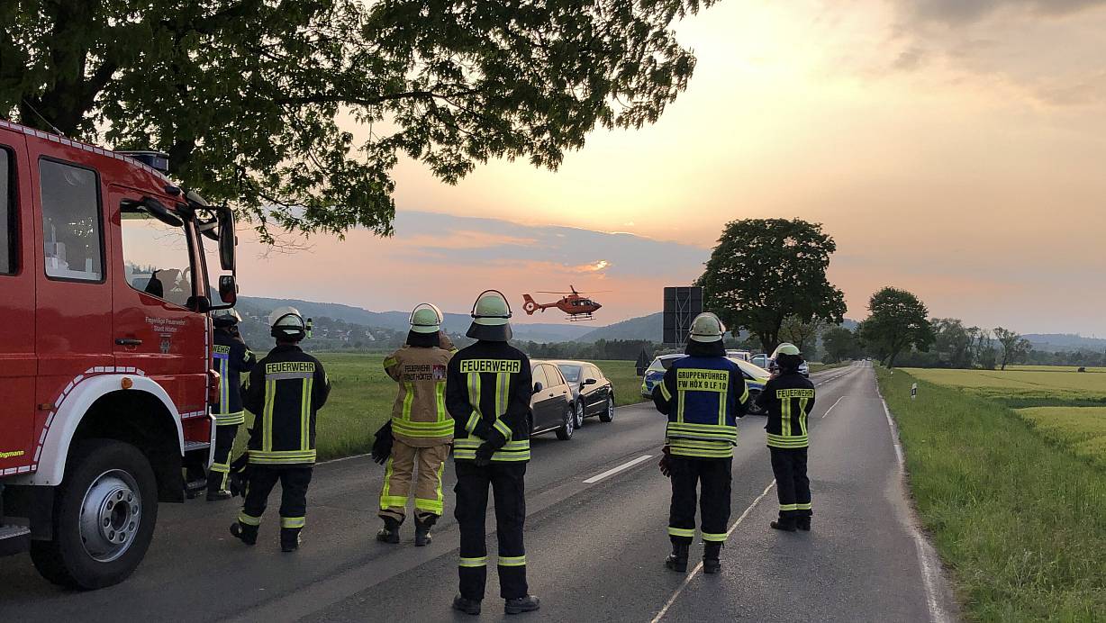 Die Fürstenberger Straße ist für rund zwei Stunden gesperrt. Ein Rettungshelikopter landet.
