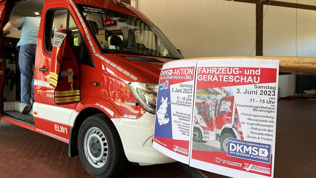 Mit einer Fahrzeug- und Geräteschau sorgt die Feuerwehr Beverungen für viel Aufmerksamkeit für die Typisierungsaktion. | © Feuerwehr Beverungen