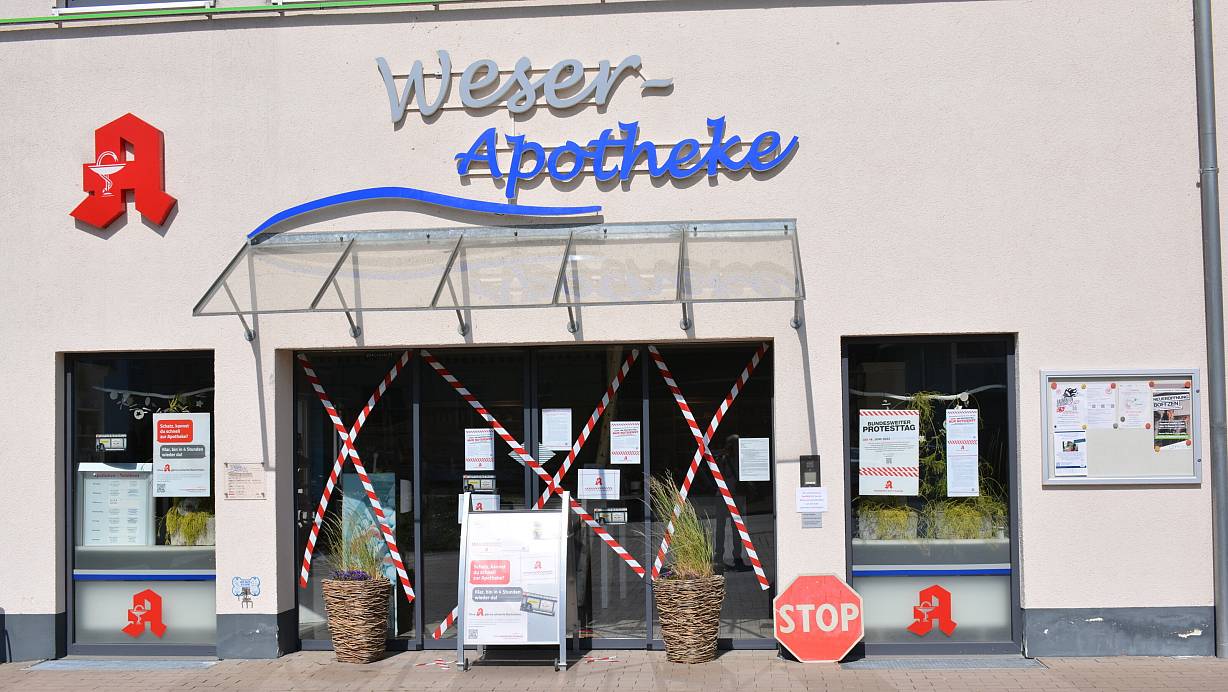 Der Eingang zur Apotheke bleibt am Protesttag verschlossen. | © Manfred Bues