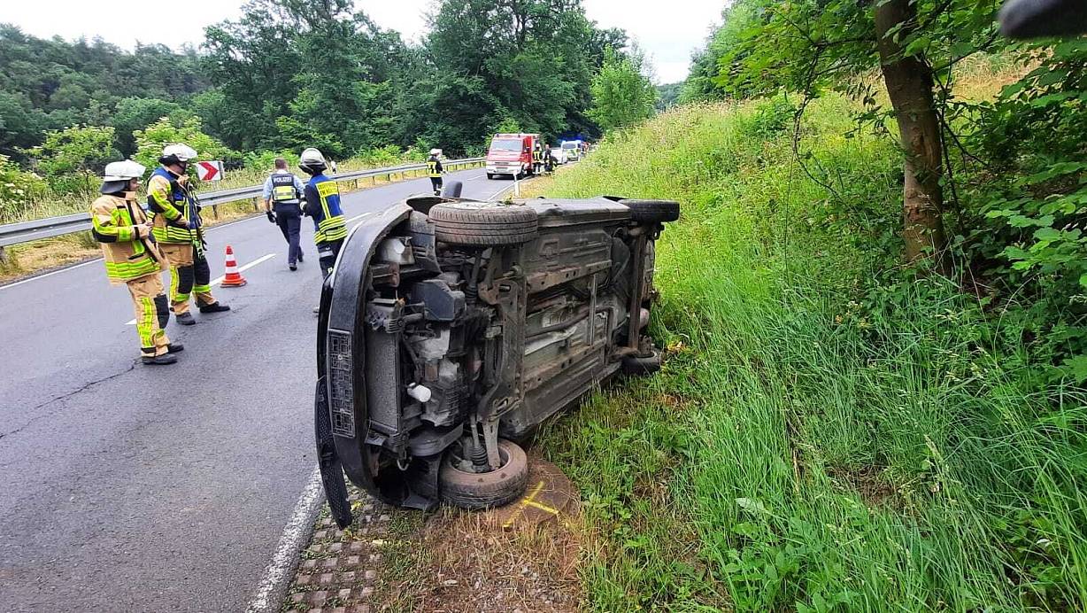 Auto kommt bei Höxter in den Graben und überschlägt sich