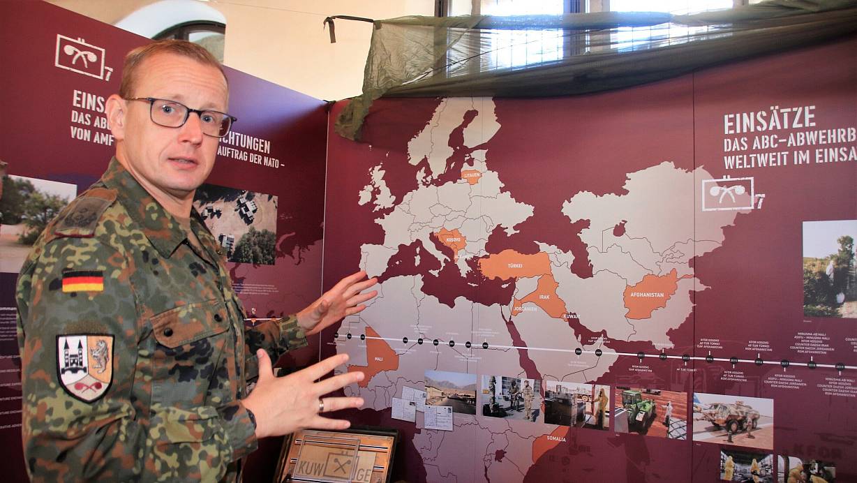 Erstmals präsentiert sich das ABC-Abwehrbataillon mit einer Ausstellung. Kommandeur Michael Gorzolka erläutert die Hintergründe des langfristig angelegten Projektes.
