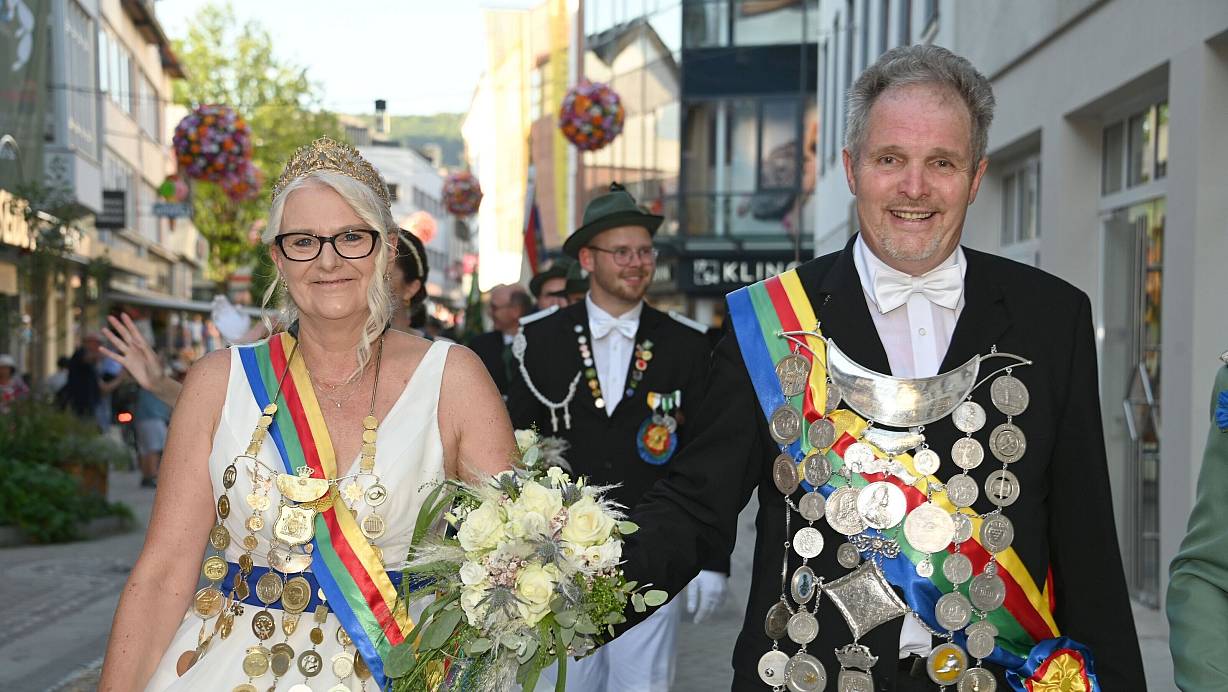 Höxters amtierender Schützenkönig Dieter Kuhlebrock und seine Frau Martina verleihen dem Festumzug einen royalblauen Anstrich. | © Thomas Kube