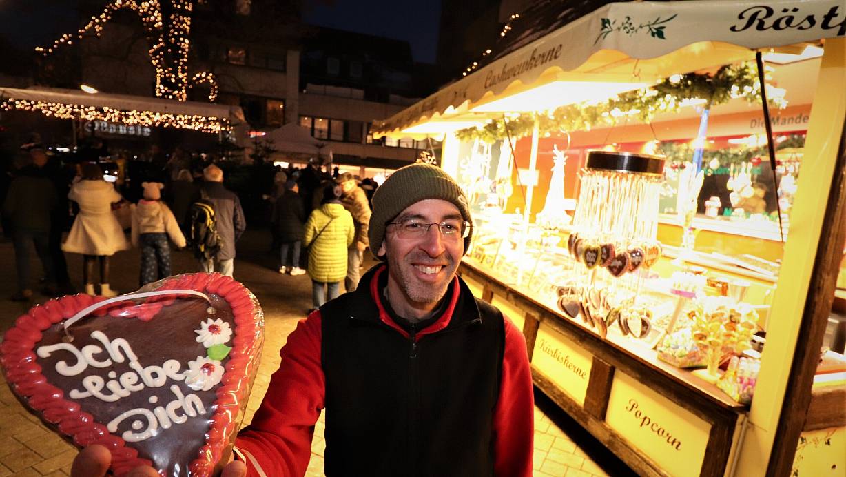 Der Vorsitzende der Werbegemeinschaft, Jürgen Knabe, betonte bei der gemeinsamen Eröffnung des Marktes mit Bürgermeister Daniel Hartmann die große Freude darüber, dass der Weihnachtsmarkt endlich wieder in gewohnter Form stattfinden kann.