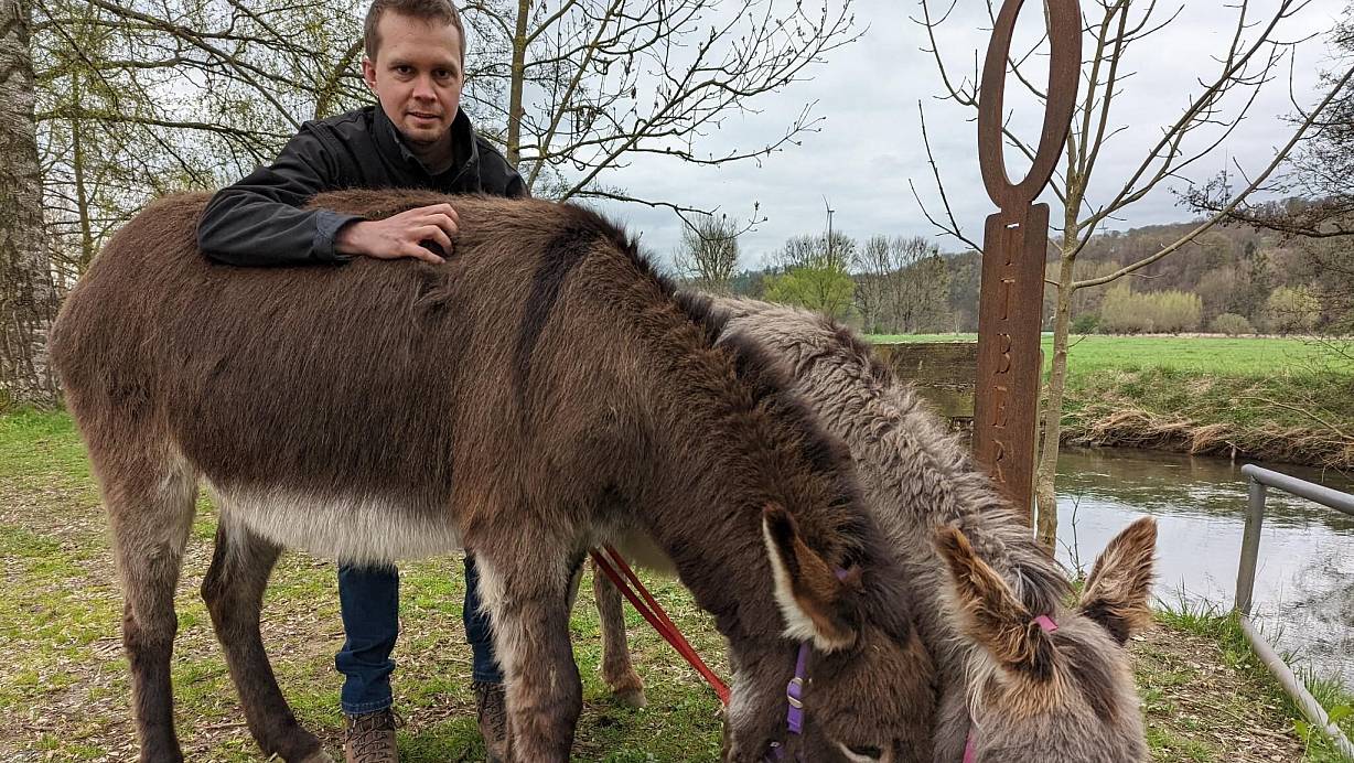 Auf die Idee kam er, als er anlässlich einer Projektreihe mit den Kindergartenkindern eine Bauernhoferlebnis-Pädagogin besuchte, bei der gerade erst zwei junge Esel auf den Hof gezogen waren. Lukas Barkhausen erlebte die Eingewöhnungsphase mit. Schnell wuchs die Liebe zu den Eseln. „Wer einmal einem Esel in die Augen geschaut hat, kann seinen Blick nur ungern wieder abwenden“, beschreibt er die Faszination. Er machte den Sachkundenachweis für die Eselhaltung in der Nähe von Rosenheim.