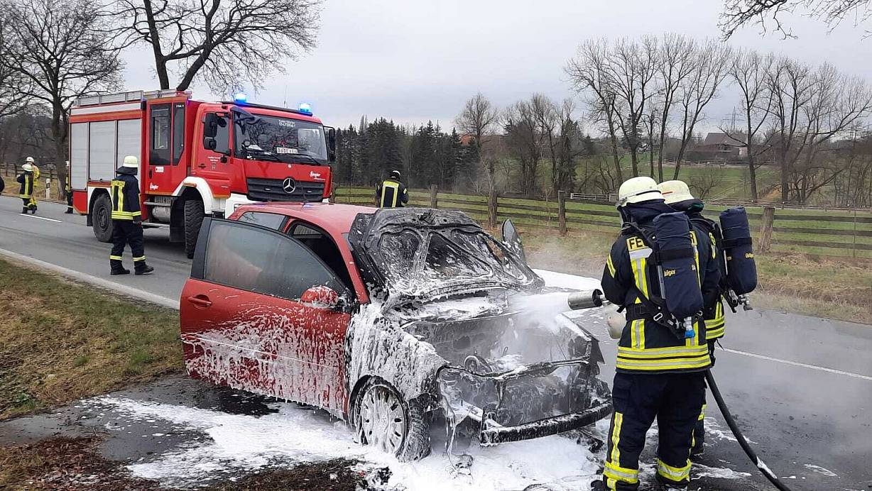 Feuer im Motorraum: Auto von junger Familie brennt bei Höxter